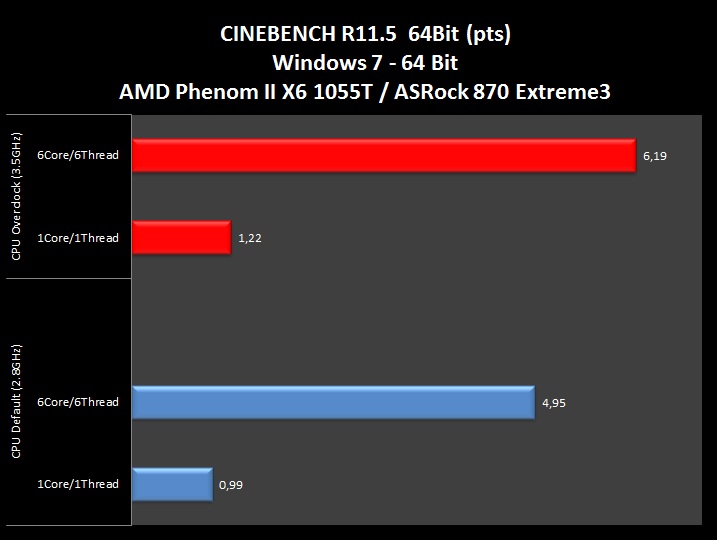 Maxon Cinebench R11.5 esegue test delle prestazioni mediante l'utilizzo combinato di calcoli matematici complessi. Il primo test riguarda le OpenGL, gli altri test effettuano due rendering di un'immagine, prima utilizzando un solo core della CPU e successivamente tutti i core disponibili.
