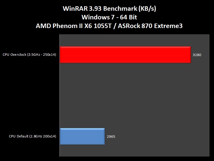 Noto programma di compressione/decompressione che al suo interno integra un tool per il benchmarking. Anche in questo caso saranno riportati nel grafico quanti KB/s il sistema, e in particolar modo la CPU, sia in grado di comprimere/decomprimere.