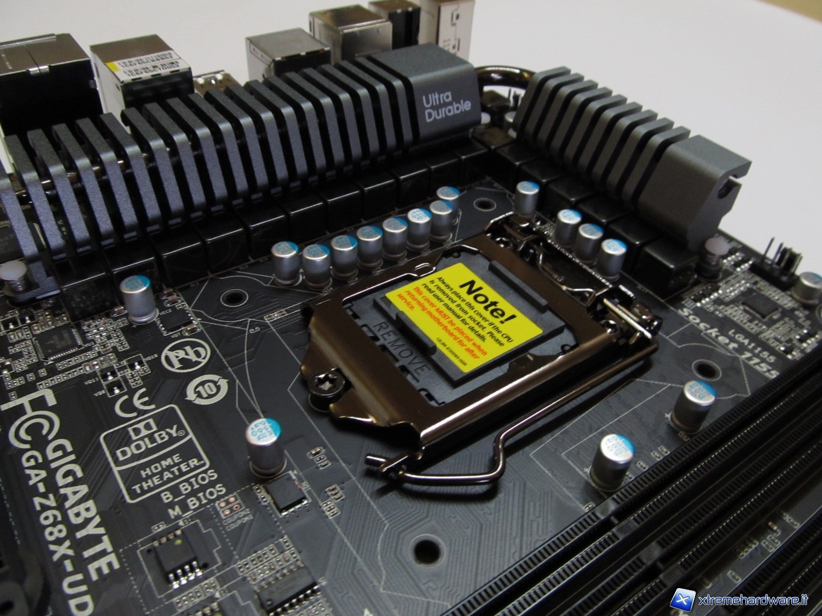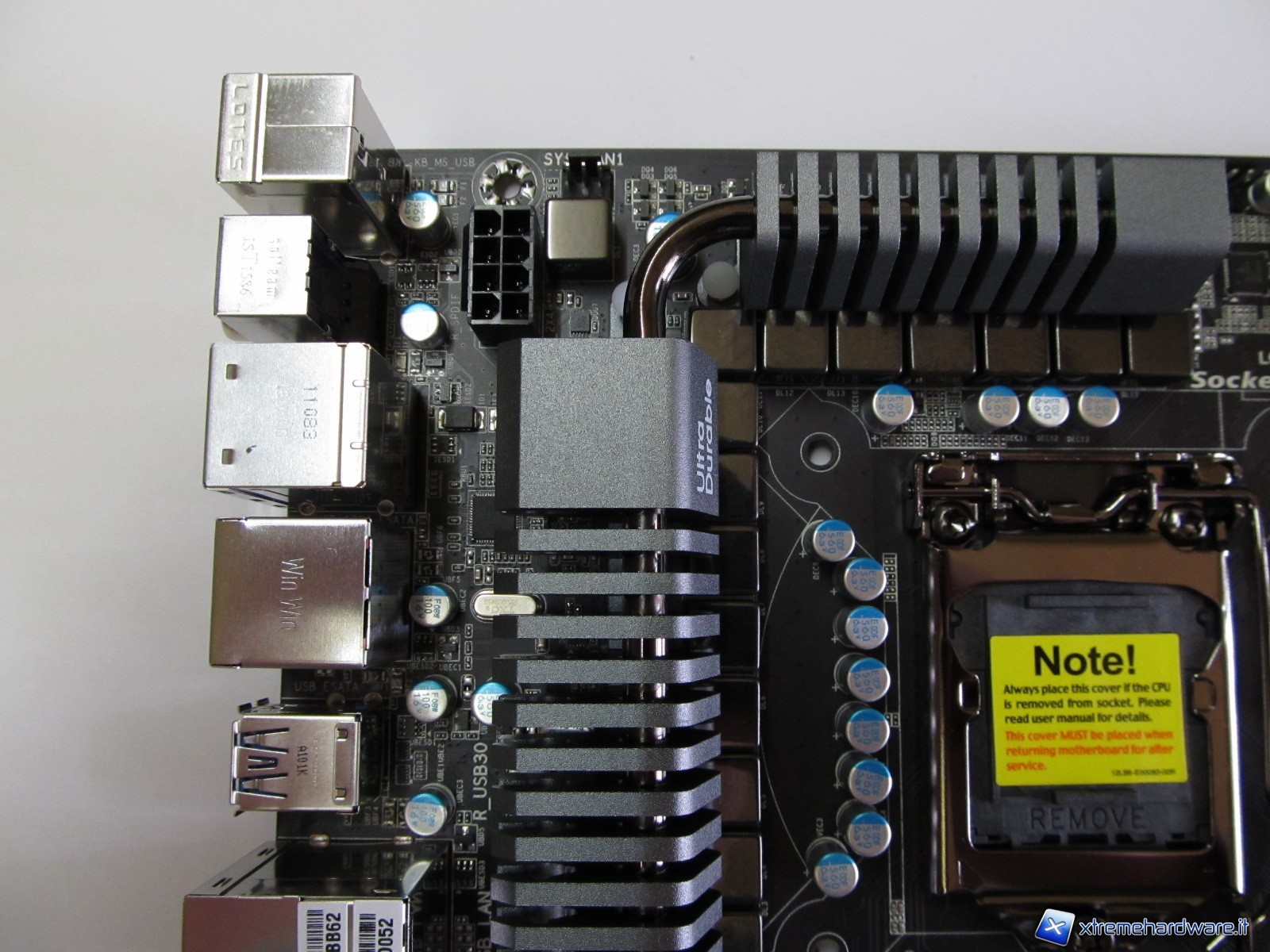 Nelle fotografie seguenti poniamo attenzione alla zona socket (LGA-1155); piuttosto imponente risulta essere il sistema di dissipazione del Driver Mosfet.