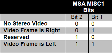 Il primo standard prevede un piccolo pacchetto d’informazioni (Main Stream Attribute) trasmesso dopo ogni frame, durante l’intervallo di blank, per segnalare la presenza di un frame destro o sinistro o di un frame o, nel caso di flusso video normale, l’assenza della stereo visione.