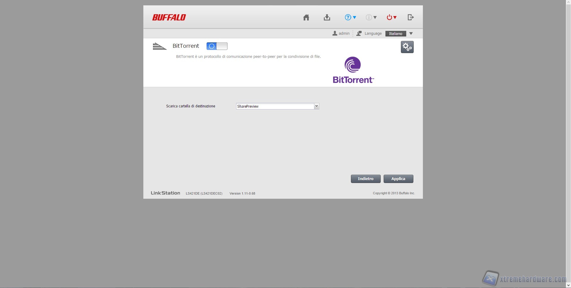 La funzione “Bit Torrent”, come il nome suggerisce, ci permette di scaricare file direttamente nella cartella selezionata all’interno del NAS.