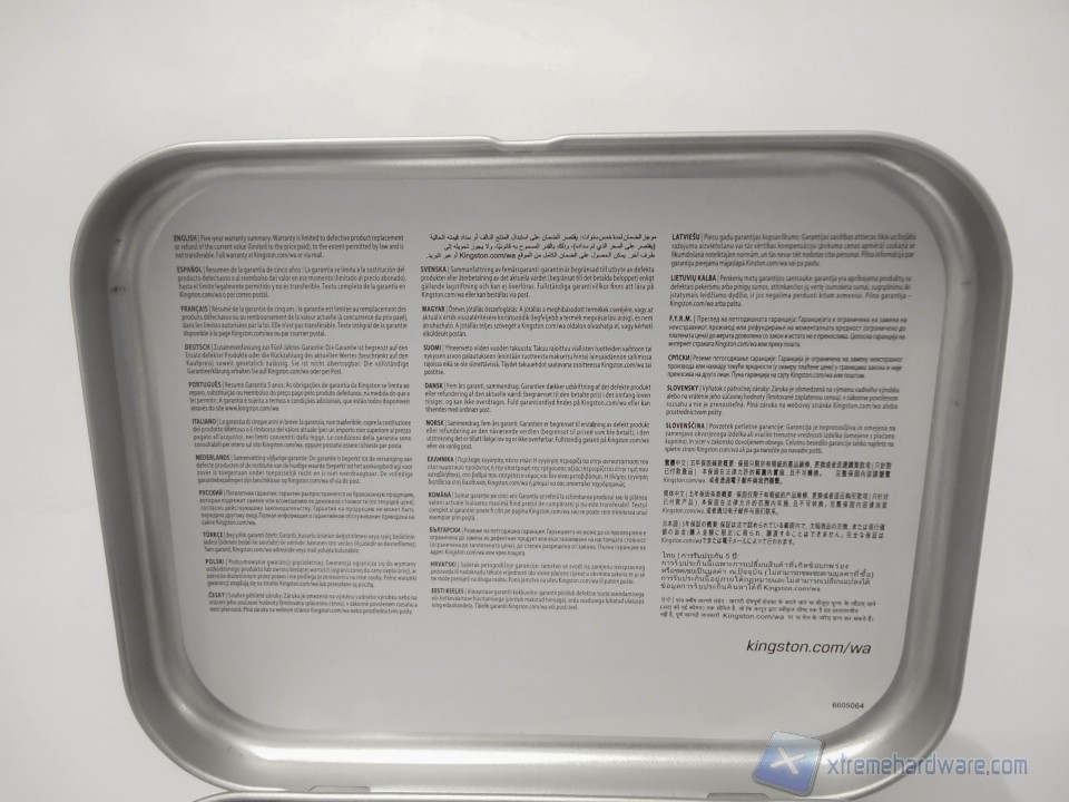 Aprendo la confezione troviamo nella parte inferiore del coperchio alcune condizioni sulla garanzia Kingston scritte in ben 33 lingue.
