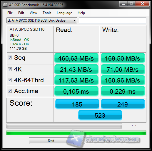 Come si può osservare dalle varie schermate effettuate, l'unità SSD si comporta tutto sommato in maniera ottimale, evidenziando buoni risultati nei test. Specialmente in modalità sequenziali ed in lettura i risultati sono davvero elevati.